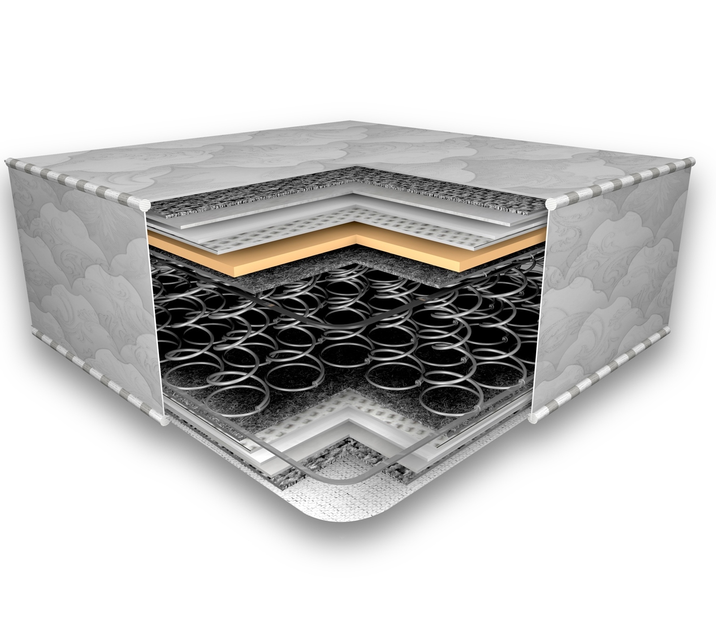 Composición del colchón: 1. Jacquard. 2. Algodón. 3. Fibra sintética. 4. Fieltro flexográfico. 5. Spunbond. 6. Espuma viscoelástica. 7. Látex natural. 8. Látex de coco…