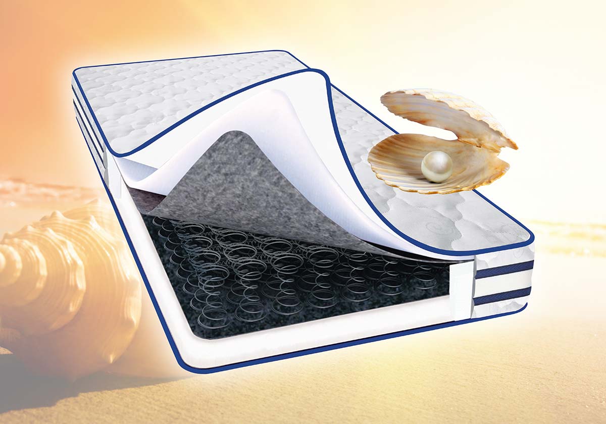 Composición del colchón: 1. Jacquard. 2. Acolchado sintético. 3. Espuma de poliuretano. 4. Fieltro térmico. 5. Bloque de muelles Bonnel. 6. Estructura europea. 7. Malla 3D estándar…