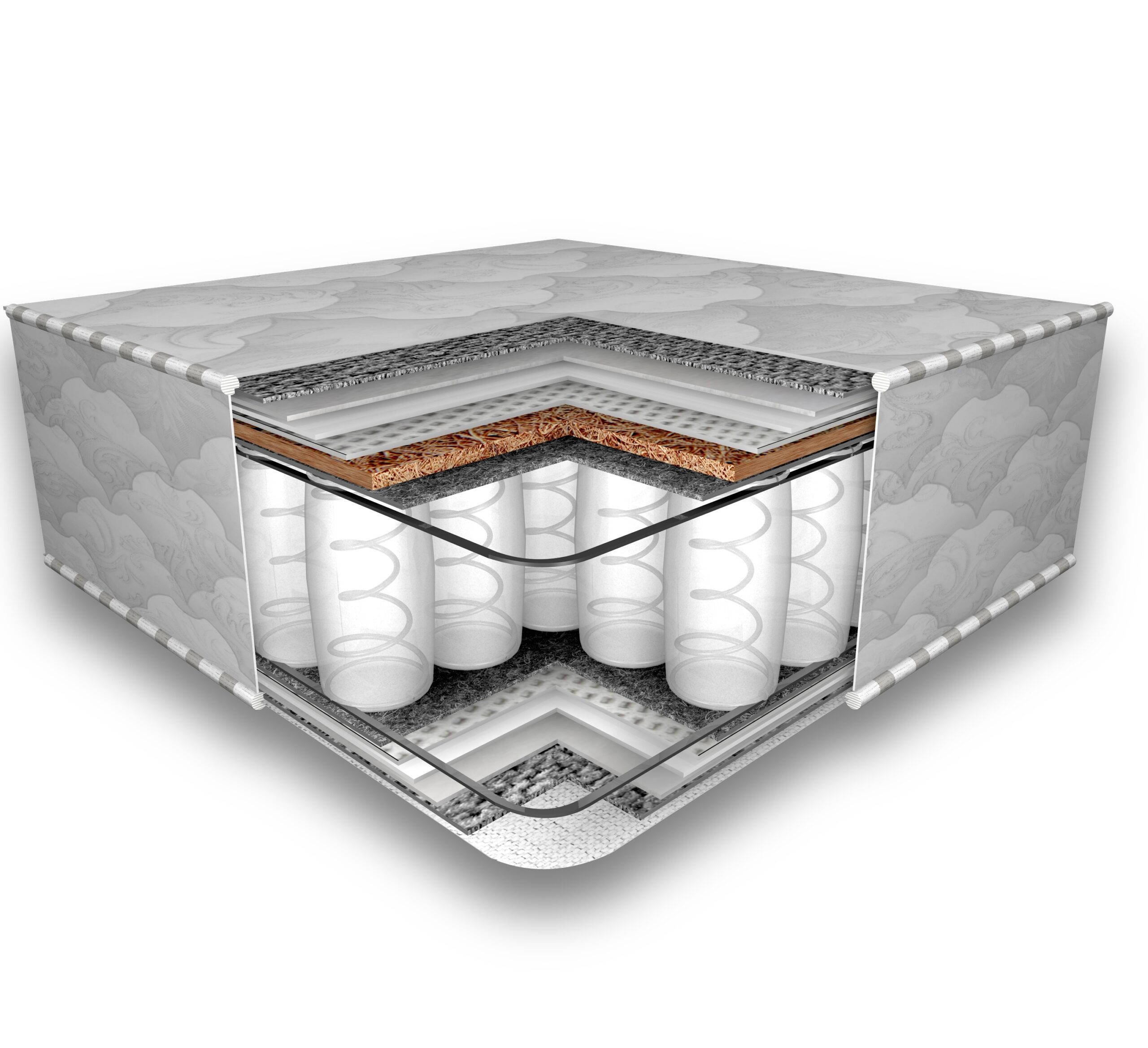 Composición del colchón: 1. Jacquard. 2. Algodón. 3. Syntepon. 4. Flexopovst. 5. Spunbond. 6. Látex de fibra de coco. 7. Fieltro térmico. 8. Lana. …