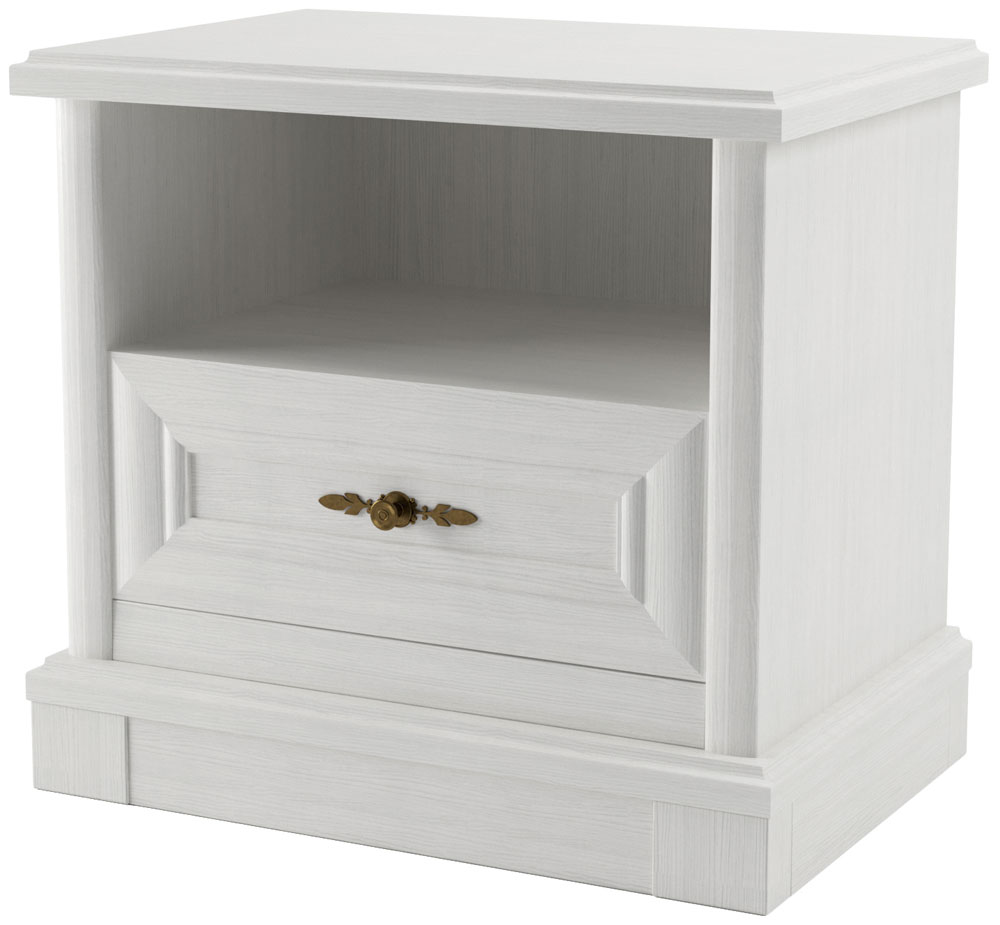 Cuerpo de aglomerado: pino vaudeville. Frentes de MDF: pino vaudeville. Elementos con cajones sobre guías de extracción total.